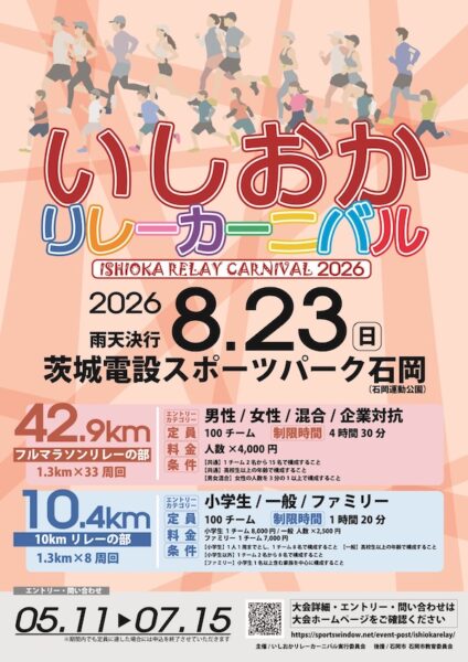 | 問い合わせ | 水戸黄門漫遊マラソン実行委員会事務局(水戸市市民協働部スポーツ課水戸黄門漫遊マラソン推進室内) TEL:029-303-7808(月~金/9:00~17:00、祝日を除く) |