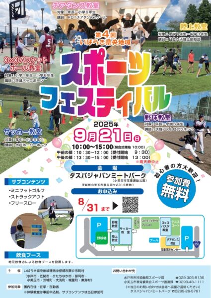 | 問い合わせ | あみスポーツフェスタ2025実行委員会 事務局(阿見町教育委員会生涯学習課) 電話029-888-2526 メールshogaigakushuka-ofc@town.ami.lg.jp |
