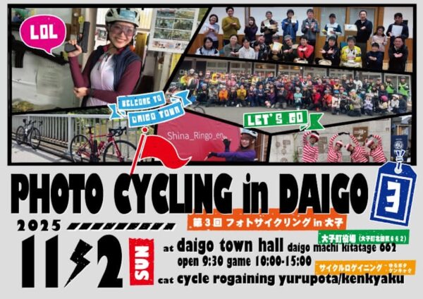自転車で町内をめぐり、チェックポイントでの写真撮影・グルメ・アクティビティでポイントを貯めて高得点を目指すサイクリングイベントです。