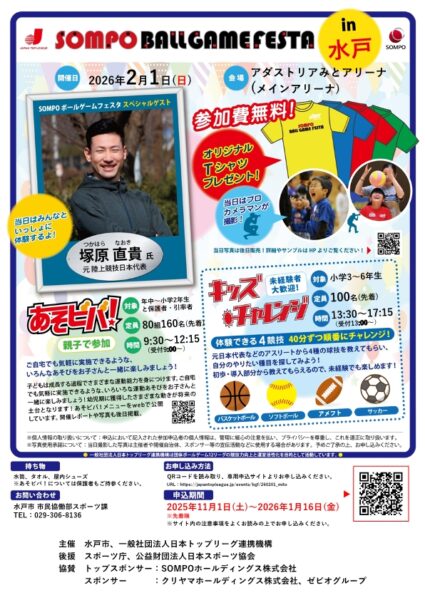 | 問い合わせ | 水戸市市民協働部スポーツ課 TEL029-306-8136 メールsports@city.mito.lg.jp |