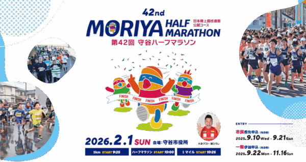 | 問い合わせ | 守谷ハーフマラソン事務局 TEL:0297-38-7735(平日/8:30~17:15 土・日・祝日は除く) E-Mail:info@sports-moriya.com |