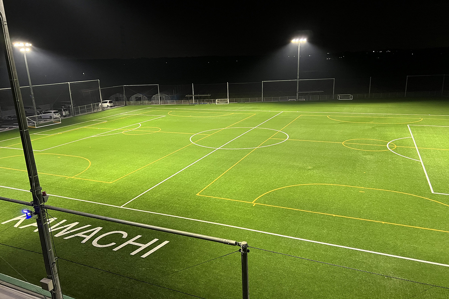 スポーツパークかわちは令和6年3月にオープンした人工芝の運動場で、主にフットサルやグラウンドゴルフ等で利用されています。照明設備完備で町民の方及び近隣市町村の方々にもご利用いただいています。