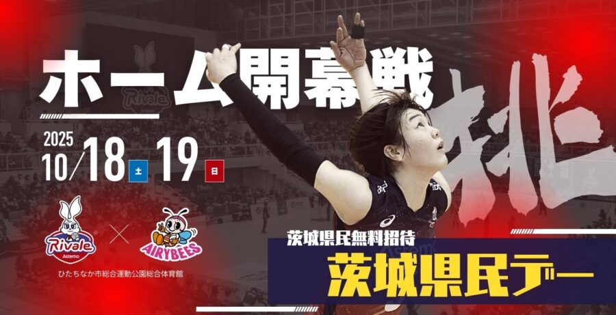 申込延長10/8(水)まで!【Astemoリヴァーレ茨城】10月18日(土)・19日(日)のホーム開幕戦(茨城県民デー)に県民の皆さまを無料ご招待!