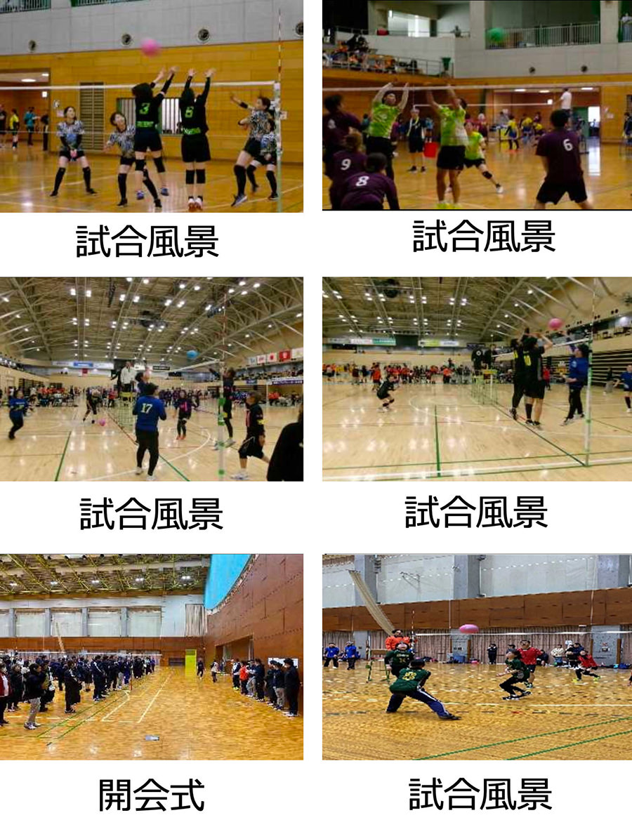 2月の寒い日にも関わらず、県内のソフトバレーボール愛好者が、フリーの部(18歳以上)、160歳の部(4人の合計)、200歳の部、240歳の部、レディースの部のカテゴリーで健康づくり、地域社会の交流を楽しみました。